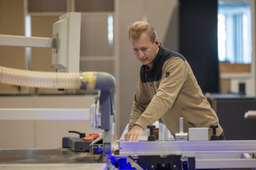 Wij beschikken over een modern geavanceerd machinepark, dat bediend wordt door gediplomeerde interieurbouwers. Dit zorgt voor topkwaliteit met aandacht voor detail wat terug te zien is in uw meubilair. Dankzij ons uitgebreide machinepark is op het het gebied van hout in principe alles mogelijk in onze werkplaats. Afwijkende vormen, materialen en maatvoering zijn dan ook geen enkel probleem. Het plaatmateriaal wordt op maat gemaakt en vervolgens bewerkt op de kantenverlijm en de computergestuurde CNC-machines. Voor het spuitwerk werken wij nauw samen met een ervaren spuiterij zodat alle gewenste kleuren en afwerkingen mogelijk zijn.